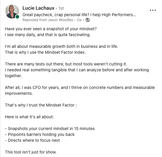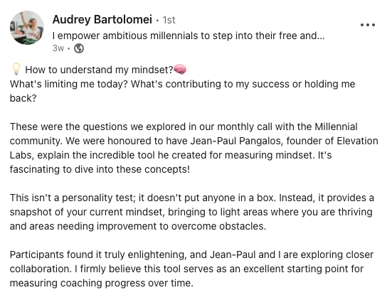 People on Linkedin Recommending Our Mindset Metrics Tools